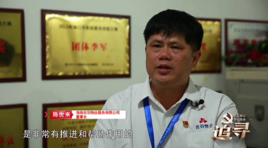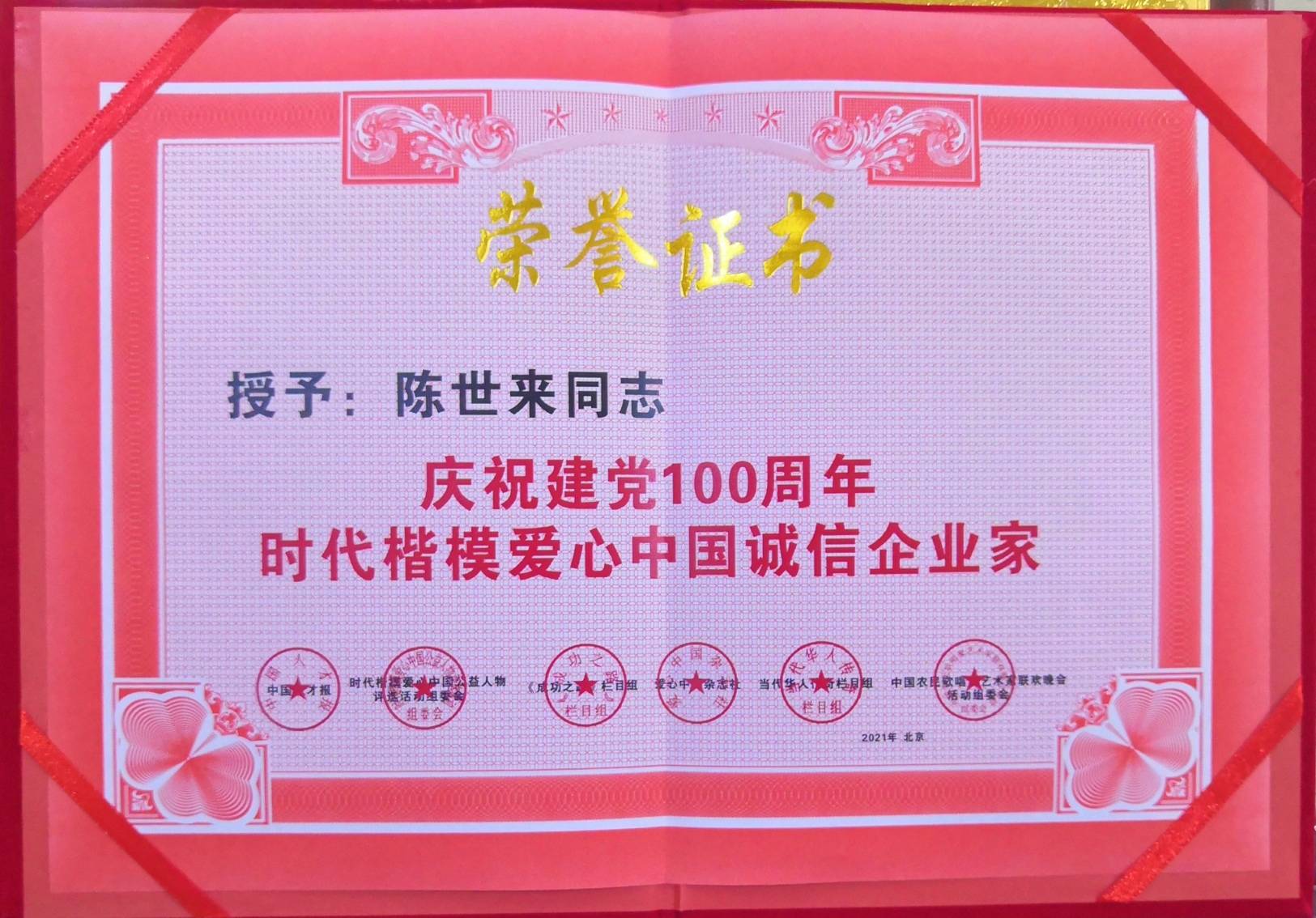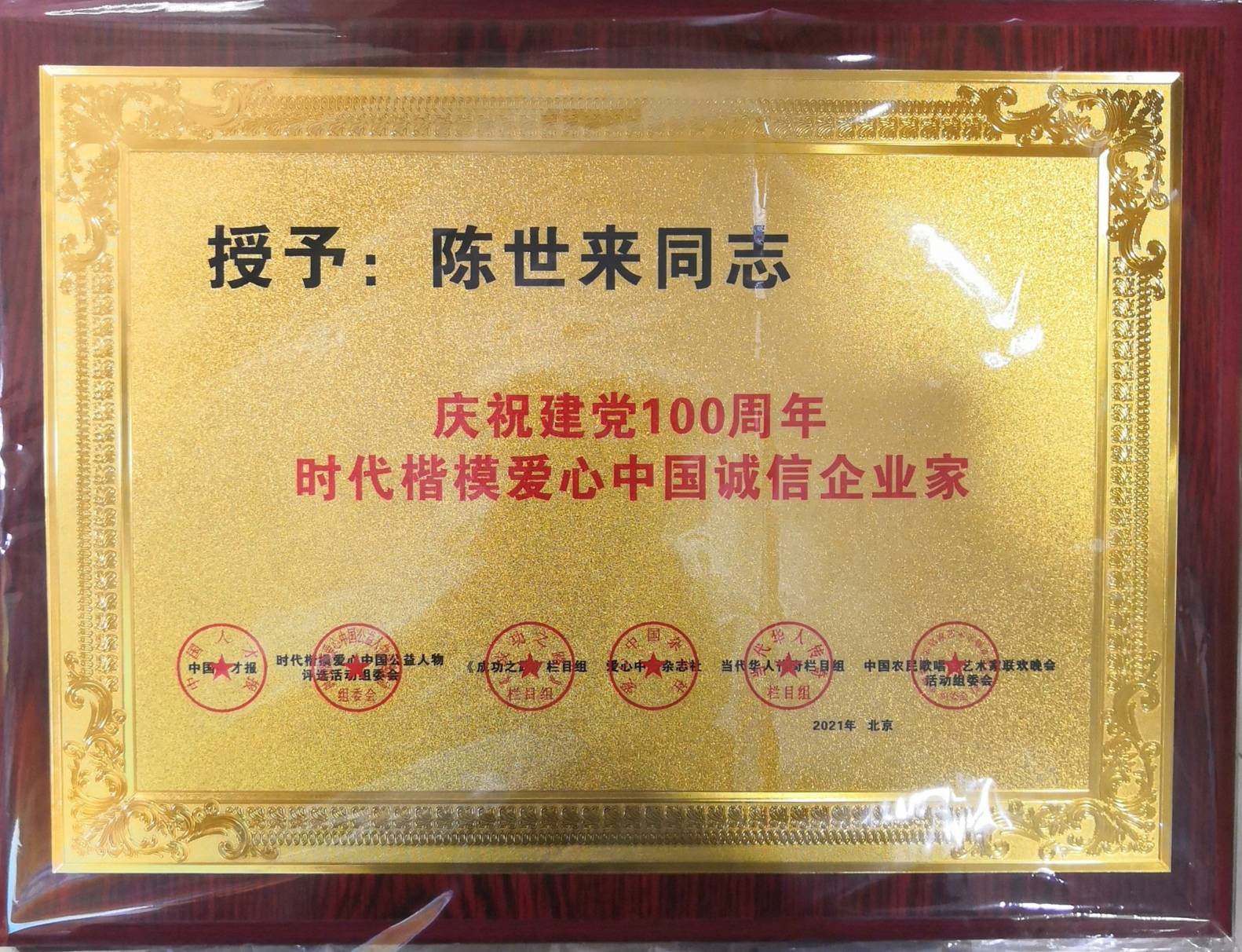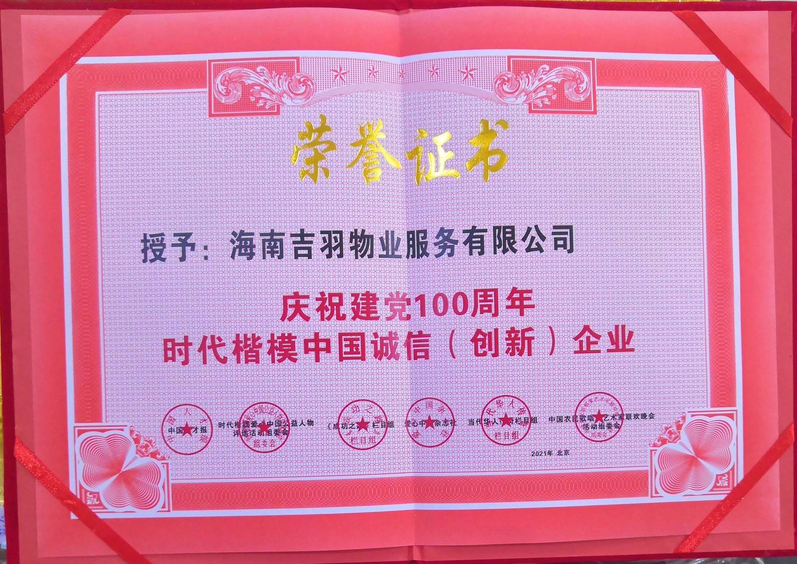 董事长陈世来多年来诚信经营,重合同守信,安排工人就业,带领员工帮扶老人,积极参与各种公益党风活动,捐款捐物,奉献爱心等方面贡献突出,海南吉羽物业有限公司被授予:“庆祝建党100周年时代楷模中国诚信(创新)企业”,公司董事长陈世来被授予:“庆祝建党100周年时代楷模爱心中国诚信企业家”光荣称号。