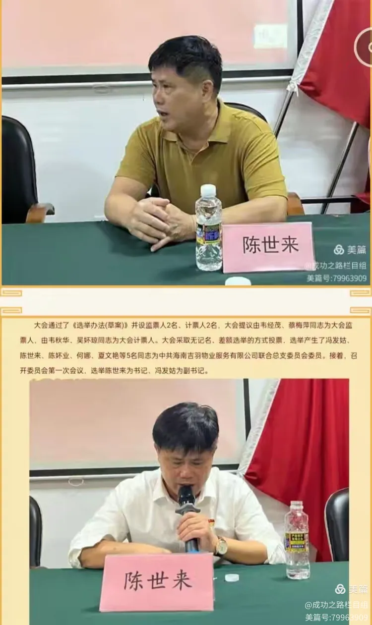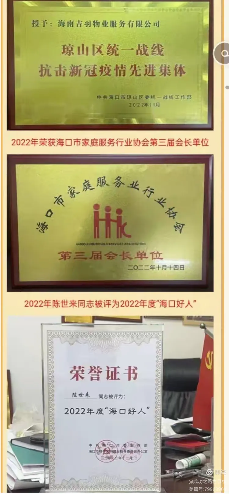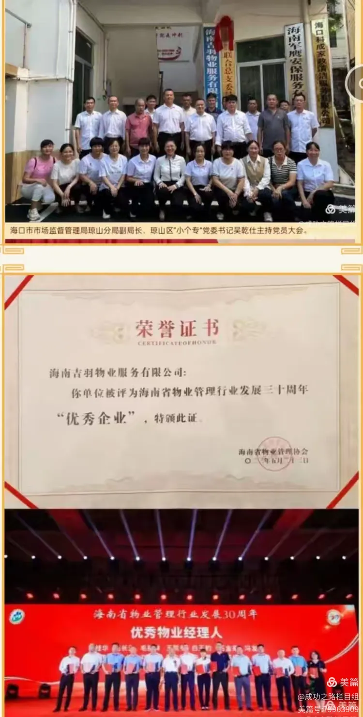 央视《成功之路》栏目讯《记者:李小民》2024年11月8日上午在海南吉羽物业有限公司董事长陈世来的陪同下我国著名品牌策划专家、中央电视台新闻节目制作部部长、央视融媒网执行总编辑总策划、影视编剧导演、中国人民大学-华南师范大学-西北大学兼职教授、秦岭书法大学终身名誉校长李长征,与中央电视台《成功之路》栏目主任李小民一行走进海南吉羽物业有限公司采访调研。