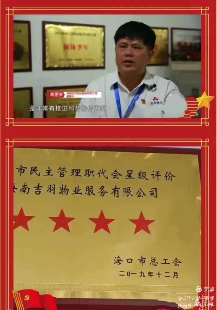 中央电视台《成功之路》栏目专访海南吉羽物业有限公司董事长陈世来