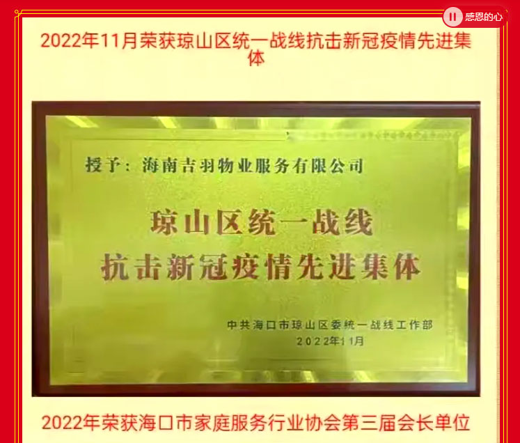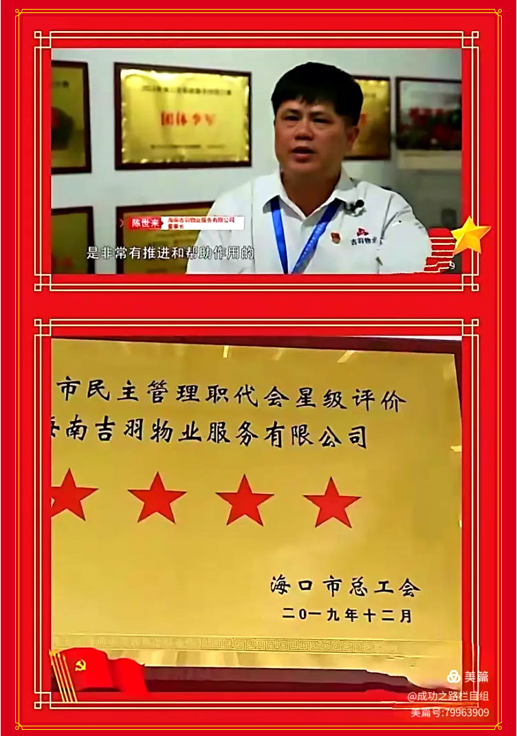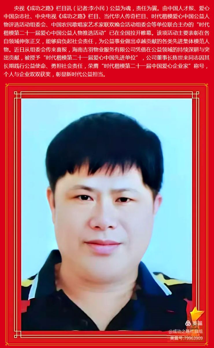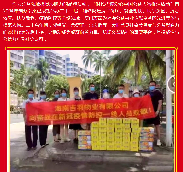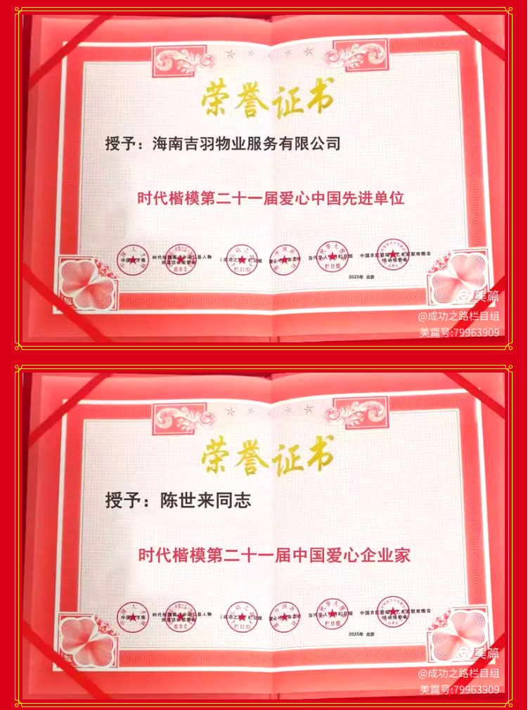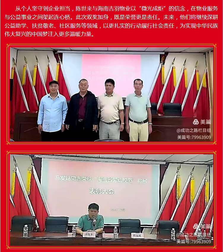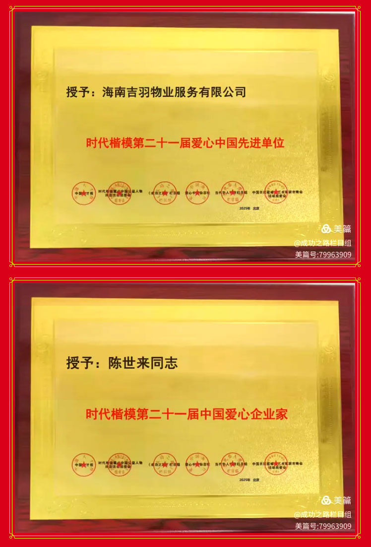 公益星光闪耀!海南吉羽物业服务有限公司与陈世来董事长双获时代楷模殊荣