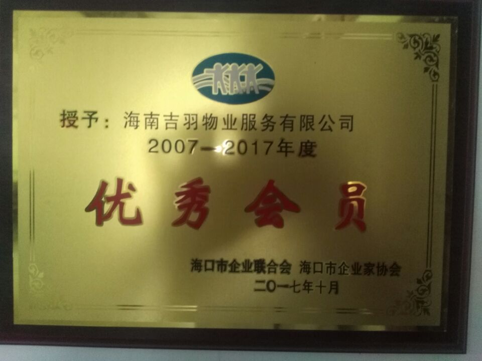 海南吉羽物业服务有限公司获得“2007-2017年度优秀会员”