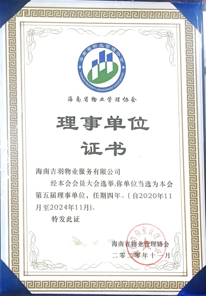 海南省物业管理协会理事单位证书